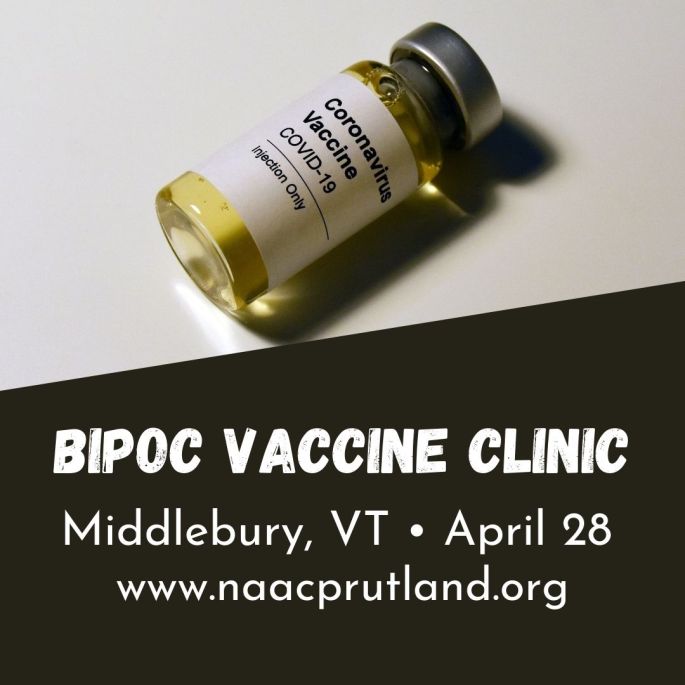 We’ve organized a BIPOC-specific vaccine clinic in Middlebury on April 28. Registration for this one is through the State of Vermont – you can call 855-722-7878, or do it through the Department of Health website (you will need to create an account if you don’t have one). In either case, you must identify yourself as BIPOC (or living in a household with BIPOC) to access this clinic.